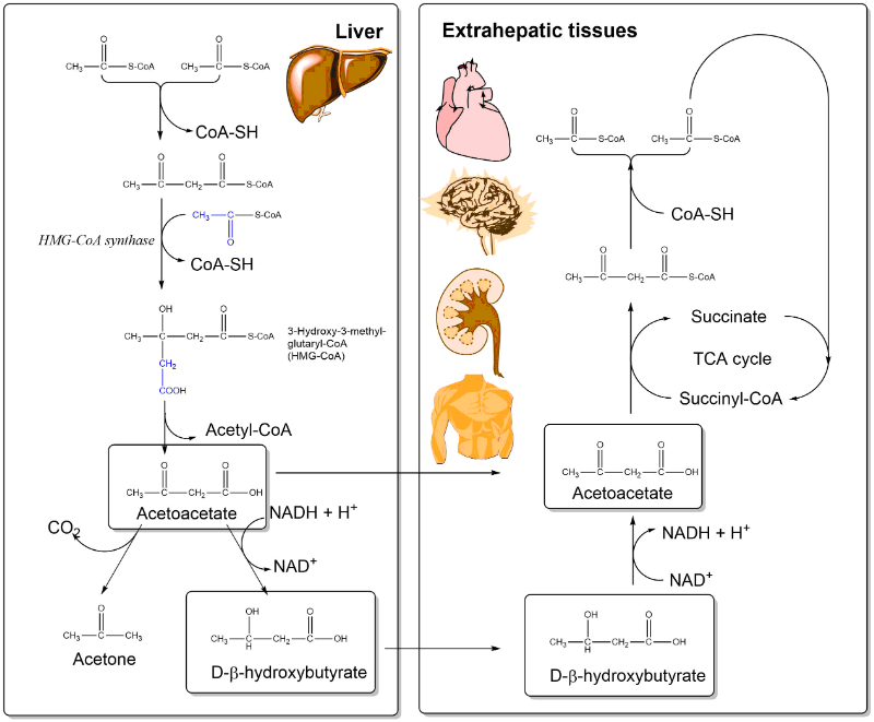- The ketogenic diet is a fat-rich, carbohydrate-low diet that induces ketone body synthesis in the liver. Ketone bodies are released from the liver and used by extrahepatic tissues to generate acetyl-CoA.