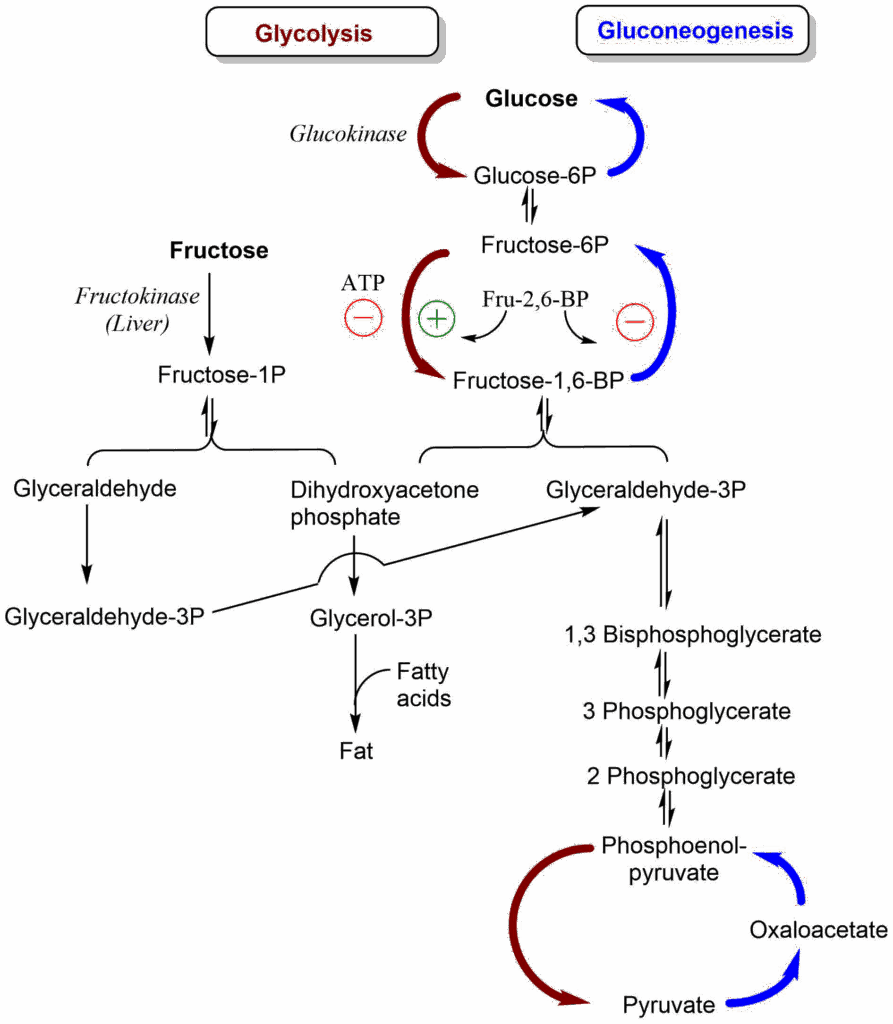 Fructose is metabolised by the liver. Its metabolism merges with glycolysis at the triose-phosphate stage. This bypasses the most important regulatory step of glycolysis in liver. Excess fructose is thus readily converted into fat, causing fatty liver disease in the long term.