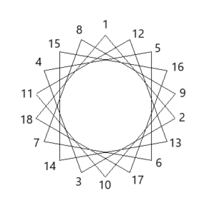 alpha-Helices are often embedded in a protein so that one side faces the surface and the other side faces the interior. Such helices are termed amphiphilic because the side facing the surface is hydrophilic and the side facing the interior is hydrophobic. A simple way to decide whether a sequence of amino acids might form an amphipathic helix is to arrange the amino acids as a helix-wheel projection. In this projection the helix is viewed from the top and one turn takes a bit more than 4 amino acids. Investigate the 3 peptide sequences below (written in one letter code) and decide which peptide might form an amphiphilic helix. The Mnemonic FAMILY VW will help you recognising hydrohobic amino acids.