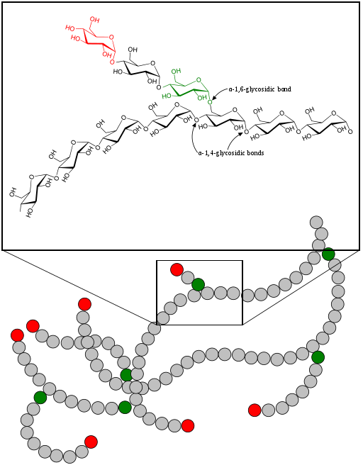Fig. 11 Different glycosidic bonds in glycogen allow branching