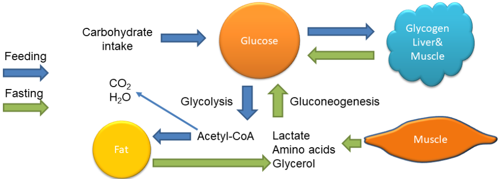 • In the absence of carbohydrates this is ensured by gluconeogenesis