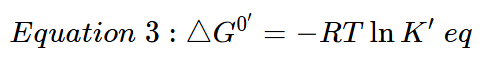 The most important factor that determines the free energy of a reaction is therefore how far the starting concentrations of all reactants in a biological system are away from the equilibrium. The relation between G0′ and the distance between starting concentrations and the equilibrium concentrations becomes obvious when the K’eq is tabulated against the free energy (Table 3)