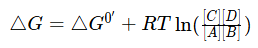 In this equation [A][B][C][D] are the prevailing in vivo concentrations, while the energy under standard conditions is incorporated into  ΔG0′.