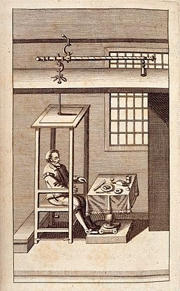 Fig. 5 Santorio Santorio consuming a meal while sitting on a balance.