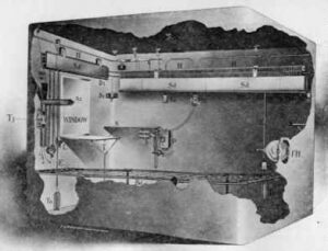 How do we know the energy content of different food groups? Wilbur Atwater and colleagues developed a room-sized human calorimeter for human nutrition studies in 1893 (see Image below). The exhaled air was passed through bottles of sulfuric acid to trap water and through bottle containing NaOH to trap carbon dioxide. Oxygen was provided from a cylinder. This allowed measuring the exchanges of water, carbon dioxide and oxygen by weighing the corresponding containers. In 1900 they published the caloric content of the major nutrients (in kcal/g) as 4, 4 and 9 for carbohydrates, protein and fat, respectively, which are still correct today.